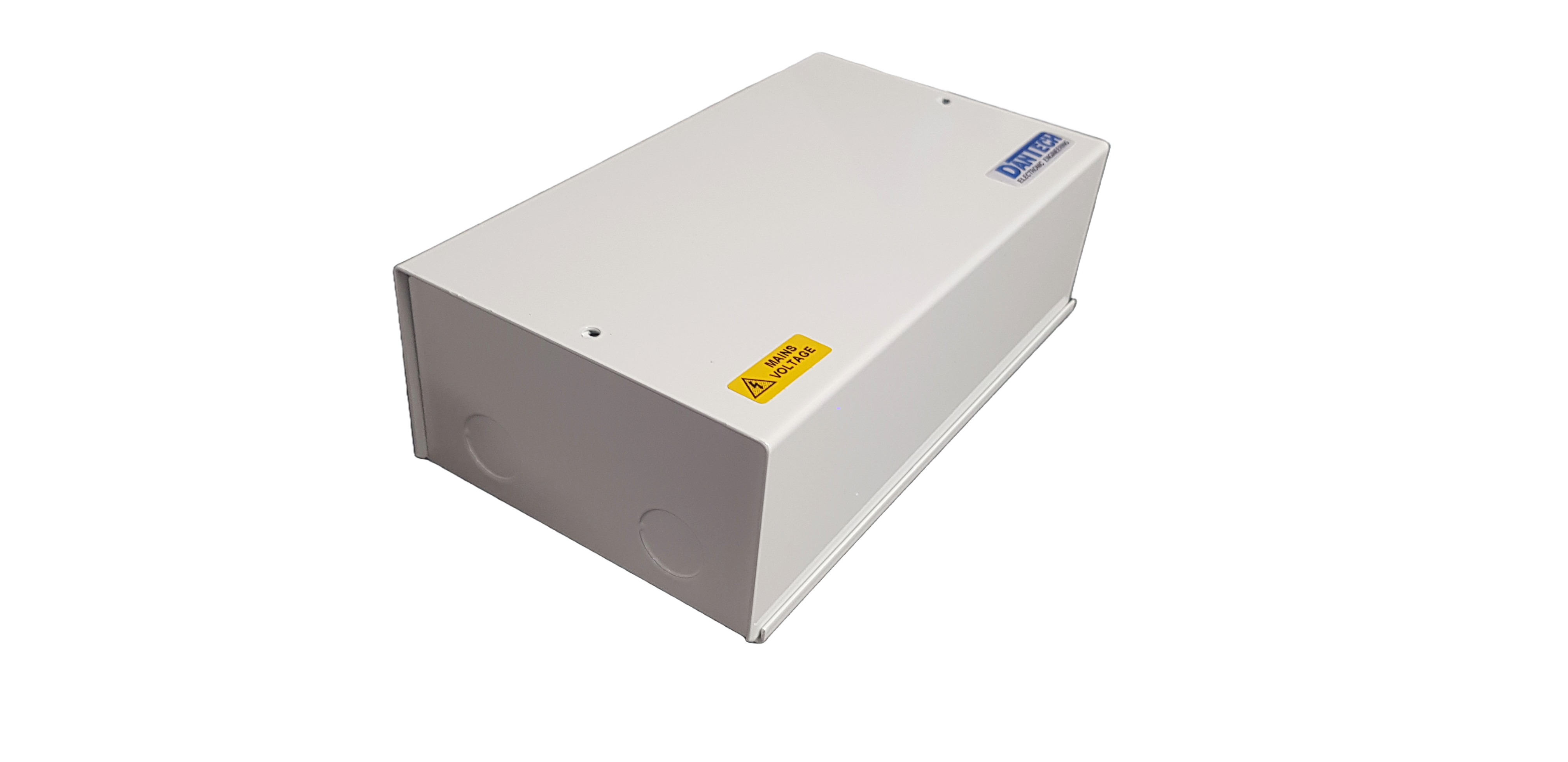 DA377-230V: 230V AC to 1 x 4A 24V AC Power supply in a mild steel enclosure